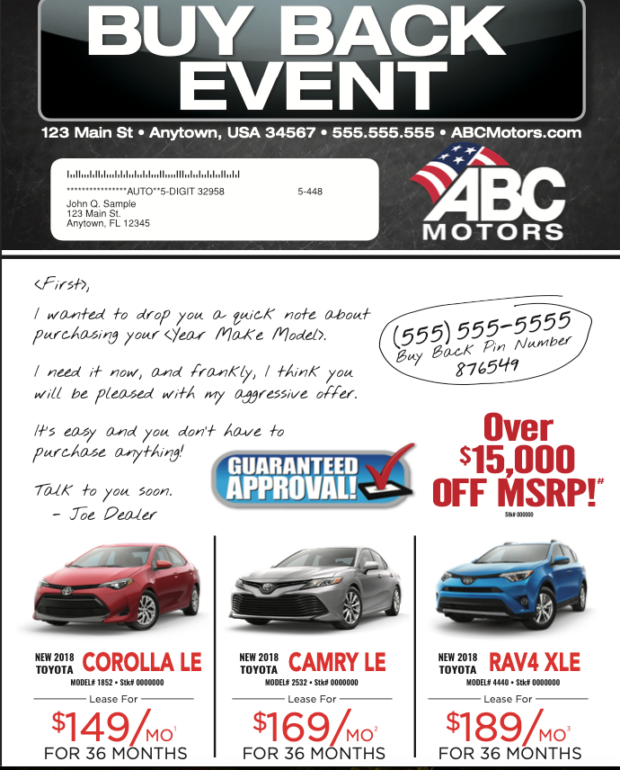 Maximize Customer Retention: Our Buyback Mailers encourage customers to consider trading in their current vehicles, promoting loyalty and repeat business.