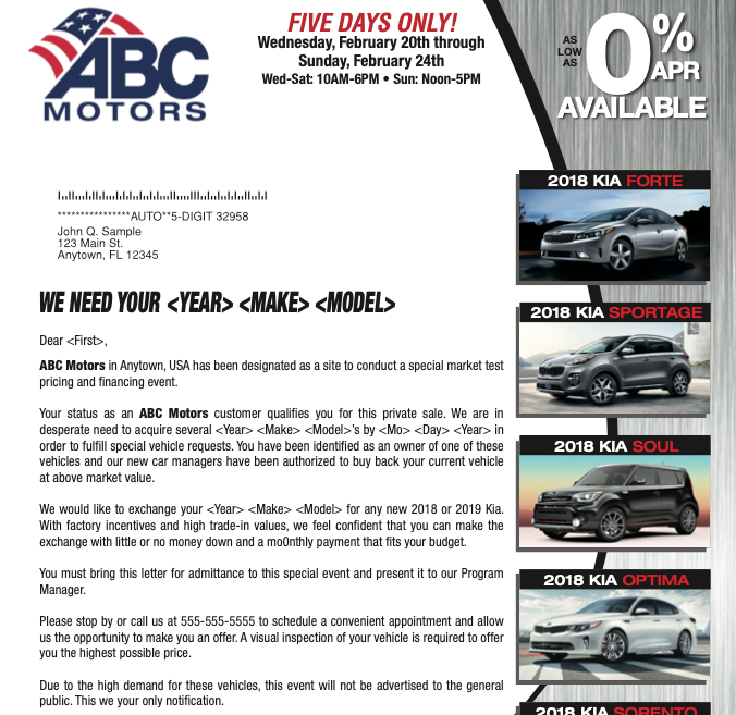 Increase Event Attendance: Event Mailers generate excitement, boost sales, and enhance brand visibility during special dealership events.
